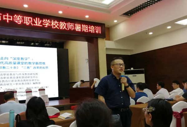 江苏省职业教育与终身教育研究所、江苏省职业教育课程教材研究中心、江苏省教育厅职业教育教师培训中心、《江苏教育研究·职业教育版》编辑部方健华(所长、主任/博士、研究员/硕导、副主编),以《走向“深度教学”:职教新时代高质量课堂的教学新思维——基于〈职教二十条〉“三教”改革的反思》为题,给与会参培老师做了一场生动鲜活的讲座。