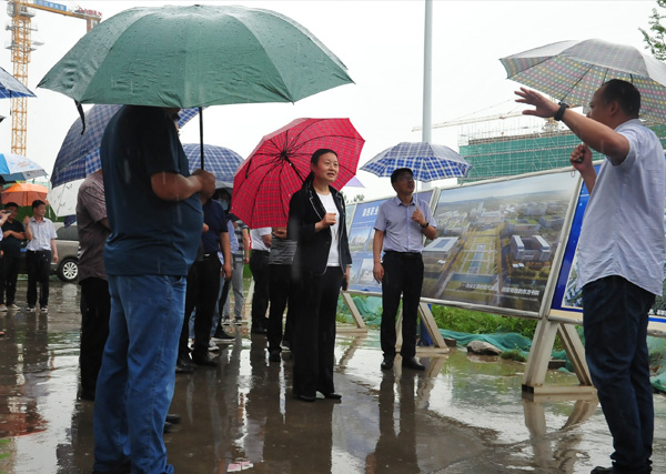 6月29日上午,在校党委书记、校长吴凤英带领下,沛县中等专业学校组织中层以上干部冒雨参观新校区建设工地,实地感受新校区建设的工程进度,同时为学校未来科学发展超前谋划提出合理化的意见和建议。