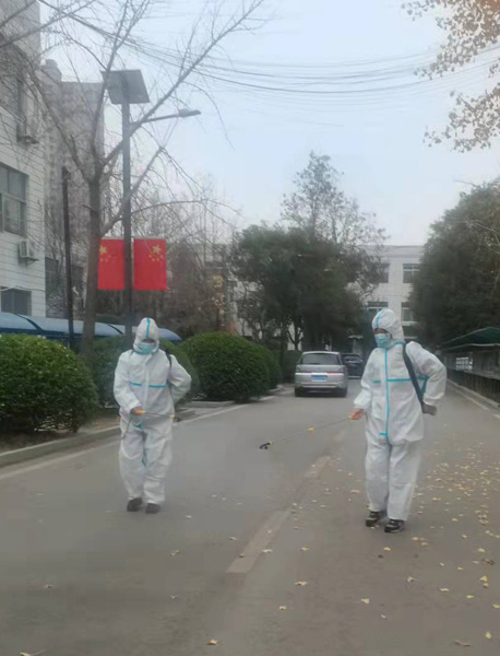 疫情就是命令,防空就是责任,疫情第一,全方消杀;不留死角,让病毒无处可藏。在疫情防空工作中,江苏省沛县中等专业吴校长带领全校师生,众志成城,全力以赴,抗击疫情。(时艳秋)