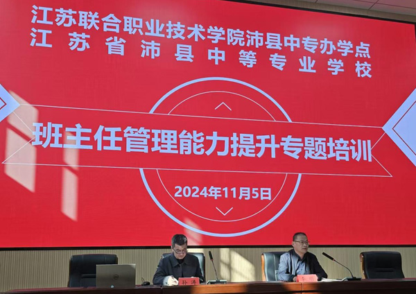 文化育人是我校开展德育工作的六大途径之一,是班主任在全环境立德树人中营造班级育人生态的重要举措。为提高班主任的专业能力,并充分发挥班级在文化育人中的教育功能,2024年11月5日下午14:10在我校教学楼D楼三楼阶梯教室,召开班主任管理能力提升专题培训。出席会议的有徐州市教育科学研究院专家孙涛、江苏省沛县中等专业学校学生管理处李明主任、各系部的主任和副主任以及全体班主任。