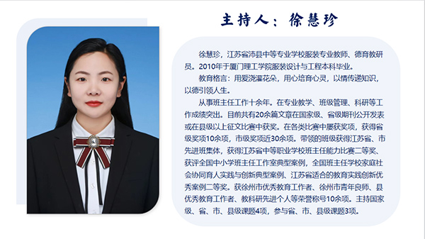 不断提高工作室成员的班主任素养,创建一支师德高尚、带班有方、富有探究和创新精神的班主任团队,提升班主任工作专业化水平,助力徐州市中等职业教育班主任工作高效可持续发展。