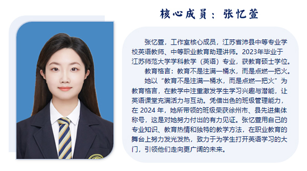 “锦绣” 班主任工作室位于江苏省徐州市沛县中等专业学校,是在学校党组织领导下,围绕班主任工作,教师自愿参与建设的学习、研究、实践、成长的共同体。工作室秉持 “守正创新促发展,砥砺深耕育桃李” 的理念,以立德树人为根本任务,致力于提升班主任专业素养,增强班级管理能力,培育全面发展的优秀学生,在中等职业学校班主任工作领域发挥示范引领和辐射带动作用。