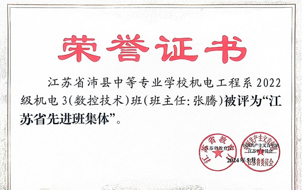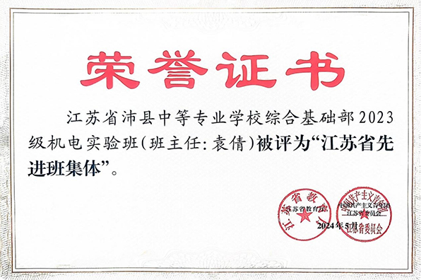 近日,江苏省沛县中等专业学校传来喜讯,“锦绣” 班主任工作室成员张腾、袁倩老师所带班级荣获 “江苏省先进班集体” 荣誉称号。