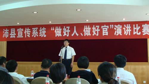 5月12日上午,沛县宣传系统“做好人,做好官”演讲比赛在县政府会议室举行,我校团委副书记燕勇荣获二等奖。