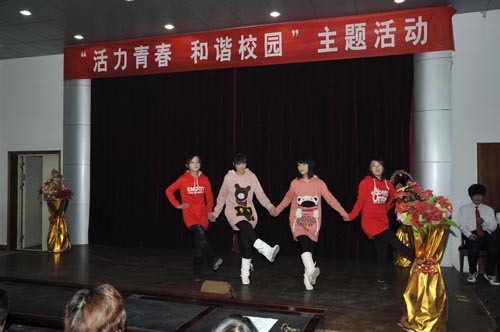 本次活动,共有十个节目,由开场舞拉开了帷幕,接着是配乐诗朗诵《认识你真好》让观众感受到:“认识你真好,因为有你,我才不再孤单;因为有你,我才不再寂寞”。一曲悠扬的笛子演奏《牧民新歌》把观众带入了优美意境,师生互动中王校长给同学们做了精彩的讲话,让同学们受益匪浅,魏雪老师和她学生崔燃的优美舞姿把活动推向了高潮。肖敬贤的演讲《扬起和谐的风帆,驶向和谐的彼岸》使同学们明白了:“创建和谐校园,需要和谐的师生关系,创建和谐校园,需要从"小"做起,创建和谐校园,需要从"我"做起。”和谐是歌,高亢而激昂,但需要你的欣赏;和谐是花,美丽而芬芳,但需要你的护养;和谐是海,辽阔而奔放,但需要你的徜徉。和谐就是一份份的奉献、一份份的关爱、一份份的尊重、一份份的理解汇成的美妙诗篇!最后肖敬贤自豪地说:“北大如何,清华又怎样,我无悔,我是职教人!”说出了职教学子的心声。活动在罗帆的《我的未来不是梦》走进了尾声,每一个节目都是经典,同学们的激情演出获得到在场观众的阵阵掌声。
