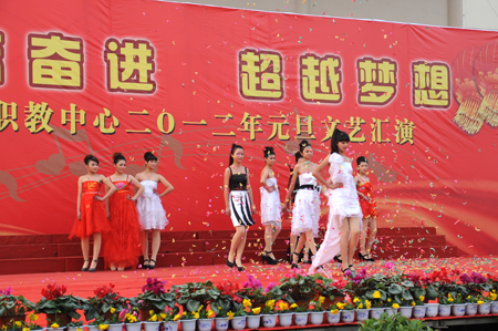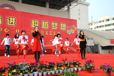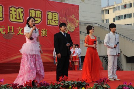 本报讯(燕勇)2011年12月31日,沛县职教中心沉浸在一片欢乐祥和、热闹喜庆的氛围之中,以“团结奋进、超越梦想”为主题的职教中心2012年元旦联欢会在我校操场隆重举行。校党委委员、全体中层干部以及师生共计五千余人参加了本次联欢会。 在欢快、轻松的迎宾曲中,江苏电大沛县学院院长、校党委书记、校长王云峰发表了热情洋溢的新年贺辞。王校长首先代表校党委对2011年的工作作出了总结,肯定了这一年来全体师生员工的工作成绩,并对2012年学校工作作出新的展望,希望学校的各项工作能继往开来,再上新台阶,同时代表学校领导在新春到来之际,对大家的辛勤工作表示感谢,并预祝全体师生新春愉快。王校长充满希冀的新年贺辞激起了全场一片热烈的掌声,开场歌舞《跟我出发》拉开了本次年元旦联欢会精彩演出的序幕。 联欢会上,踪家宜和李腾同学为大家带来了相声“人在囧途”,把“郭德纲”式的诙谐带到了现场,引得大家笑声连连;校园舞蹈队的同学们闪亮的劲装配着时尚的眼镜,为大家带来一曲充满动感的舞蹈《炫青春》;在缤纷多彩的节目中,配乐诗朗诵《职教颂》更是道出了职教学子对学校深情的祝福。 联欢会上,我们看到“职教版”的双节棍,听到了“职教版”的《美丽的神话》,欣赏到了吕文君和赵宁老师荡气回肠的老歌,各种形式的文艺节目穿插上演,各部门师生纷纷拿出自己的绝活,你方唱罢我登场,一时间,歌声、笑声、祝福声,飘荡在会场上,飘荡在全体师生的脸上和心上。整台联欢会气氛热烈欢腾,掌声、叫好声、欢笑声不绝于耳。 此次联欢会增强了职教中心全体师生的凝聚力,激励了师生奋发向上的工作热情,为新的一年开始打下了良好的基础。我们用欢声把青春的骄傲唱响,我们用笑语把激情的岁月燃烧,让我们记住这美好的时光,让我们携手共祝2012年职教中心的明天更美好!