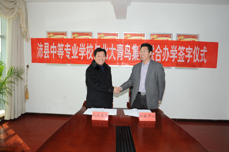 本报讯(高绪东) 3月7日下午,学校与北大青鸟正式签订校企联合办学协议,标志着职教中心在校企合作方面走上一个新台阶。此次签约,双方在信息服务专业等方面将展开深层次沟通,为促进学生勤工助学及毕业生就业提供良好的发展平台。