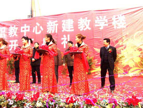 12月23日,篮球场上彩旗飘扬,拱门高悬,整个校园洋溢着节日的喜庆,到处是欢声笑语,我校隆重举行新建教学楼开工庆典。县委常委王子华、市电大书记刘涛、县人大副主任吕高骥、县政府副县长贺伟、县政协副主席王素真、市发改委处长张树强、市教育局副处长徐新文、县监察局书记孙益峰、县教育局局长郑恒良亲临庆典仪式并为开工剪彩,副校长朱广照主持。 副县长贺伟发表重要讲话,他指出,新建教学楼的开工建设是职教中心实现跨越发展的一件大事,也是我县职业教育发展的一件大喜事,对于整合教育资源、优化学校布局具有重大而深远的意义。 会上,王云峰校长发表了热情洋溢的欢迎词,从六个方面对2010年取得的成绩予以回顾并对新建教学楼的基本情况给予介绍。他指出,新建教学楼项目是我校做强化职业教育、凸显发展实力的重要举措,是国家发改委扩大内需项目,建成后,将作为机电技术应用、电子技术应用、计算机及应用、服装制作与营销和工业与民用建筑五个省级示范专业的教学和实训基地,该教学楼还设有体育馆和多功能报告厅。它的建成和使用必将大大改善我校的办学条件,有效提升学校的办学层次,为创建国家级高水平示范性中等专业学校插上腾飞的翅膀!(办公室)