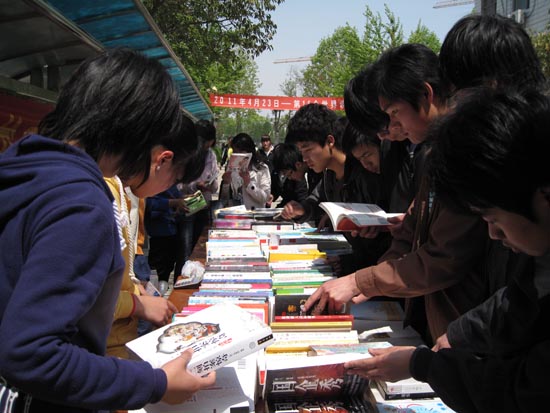 今年4月23日是第16个“世界读书日”,为进一步丰富广大师生文化知识,培养“多读书、读好书”的阅读习惯,营造和谐书香校园氛围,学校团委、图书馆联合县新华书店共同开展为期两天“好书进校园”活动。活动期间,新华书店将精心筛选的优秀图书送到学校,在学校阅报栏前集中展销。由于活动准备充分、书籍适销对路,引来广大师生零距离亲近好书、阅读好书、购买好书。课间休息时分、放学之后,图书展销台前更是摩肩擦踵、拥者如潮。正如莎士比亚所说,“生活里没有书籍,就好像没有阳光;智慧里没有书籍,就好像鸟儿没有翅膀”,该校师生如饥似渴的阅读、争先恐后的选购、流连忘返的镜头无不诠释着对知识的敬畏和挚爱,成为书香文化校园一道道靓丽的风景。