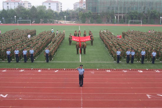本报讯(安雨)8月26日,我校2011级学生军训在全体教官和师生的共同努力下,经过6天的刻苦训练,顺利完成了各项军训任务,取得圆满成功。27个方阵1800余名新生、全体新生班主任和中层以上干部参加了军训汇演,副校长席风路主持。 军训是我校立德树人的重要内容,其目的就是锻炼同学们的意志品质,增强身体素质,加强组织纪律观念,培养昂扬的斗志和坚强的毅力,为同学们今后的成才成功打下坚实的基础。校长王云峰代表校党委和全体师生对亲临我校指导军训工作的徐州空军学院的领导和教官致以崇高的敬意!向所有新生班班主任和有关工作人员表示了衷心的感谢!向参训的全体新同学表示了亲切的问候。 王校长在讲话中强调,此次军训汇报表演,同学们整齐的步伐、嘹亮的口号、规范的动作、昂扬的斗志,充分展示了同学们朝气蓬勃、积极向上的精神风貌,这是全体参训同学6天艰苦训练的成果,也是全体承训官兵6天辛勤付出的收获。 王校长希望同学们把在军训中学到的好精神、练就的好作风带到今后的学习生活中,并继续发扬光大,进一步促进我校学风、教风和校风建设,努力把自己培养成为一名政治坚定、品德高尚,知识广博、作风优良的高素质人才。