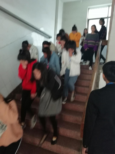 接下来,消防大队的教官,给同学们讲解遇到火灾如何逃生、自救以及疏散。经过教官的讲解,同学们演练了遇到火灾,正确的疏散、逃生办法。在教官的引导下,师生用自备的毛巾捂住口鼻,按照逃生要求低身穿过指定路线。有秩序地从各楼层就近楼梯通道撤离到外广场指定位置,演练成功。